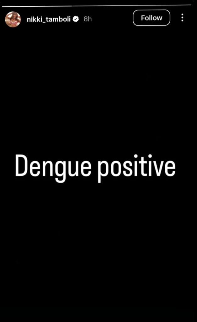 Nikki Tamboli सोशल मीडियावर खूप सक्रिय असते आणि तिच्या प्रत्येक पोस्टला मोठ्या प्रमाणावर प्रतिसाद मिळतो. अलीकडेच तिने आपल्या इन्स्टाग्राम स्टोरीतून कळवले की तिला डेंग्यूची लागण झाली आहे. काही दिवसांपूर्वी तिने एक फोटो शेअर केला होता, ज्यामध्ये तिचा ताप १०३.६ अंशांपर्यंत पोहोचल्याचे दिसत होते. या पार्श्वभूमीवर ती गणेशोत्सवात सहभागी होऊ शकत नसल्याबद्दलही दुःख व्यक्त करताना दिसली. तिच्या स्टोरीत Nikki Tamboli ने लिहिले – “गणपती बाप्पा, कृपया मला लवकर बरे करा… मला तुमचे दर्शन घ्यायचे आहे.”