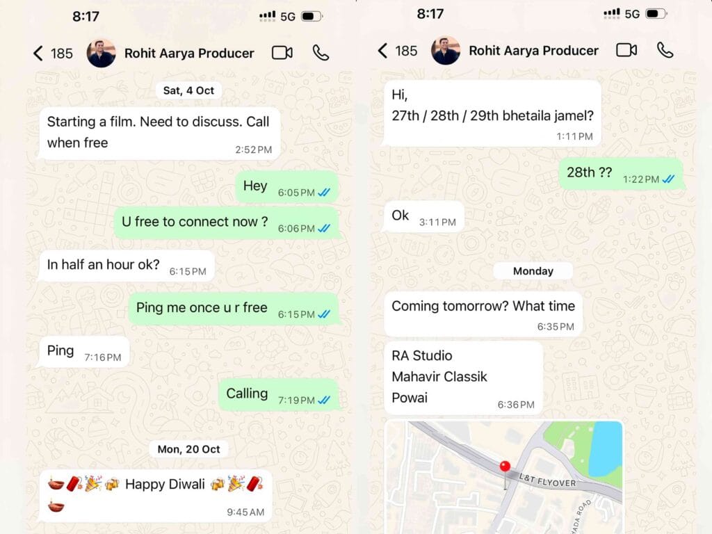 रुचिता जाधवा आणि रोहित आर्या यांच्यातील व्हाट्सअप कन्वर्सेशन..
